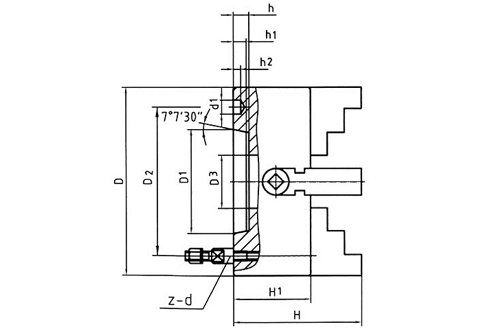 C型短錐四爪單動卡盤 C型:撥盤、螺栓鎖緊連接