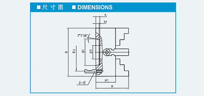 D型短錐四爪單動(dòng)卡盤 D型:拉桿、凸輪鎖緊連接